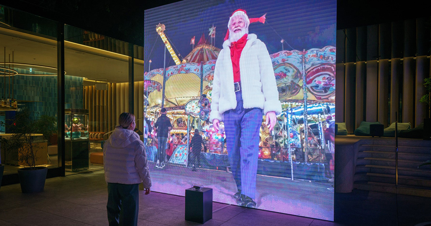 (TOKYO NIGHTTIME PROJECT ver.)「Transformirror : 鏡の向こうの自己」は、AIの力を借りて観客自身の映像を魔法のように変容させる革新的なアート作品です。参加者がカメラの前に立つと、彼らの姿は変換され、驚きとともに楽しみながら、自己の新しいイメージに触れることができます。ライゾマティクス主宰・真鍋大度とアーティスト・カイルマクドナルドによる開発制作。