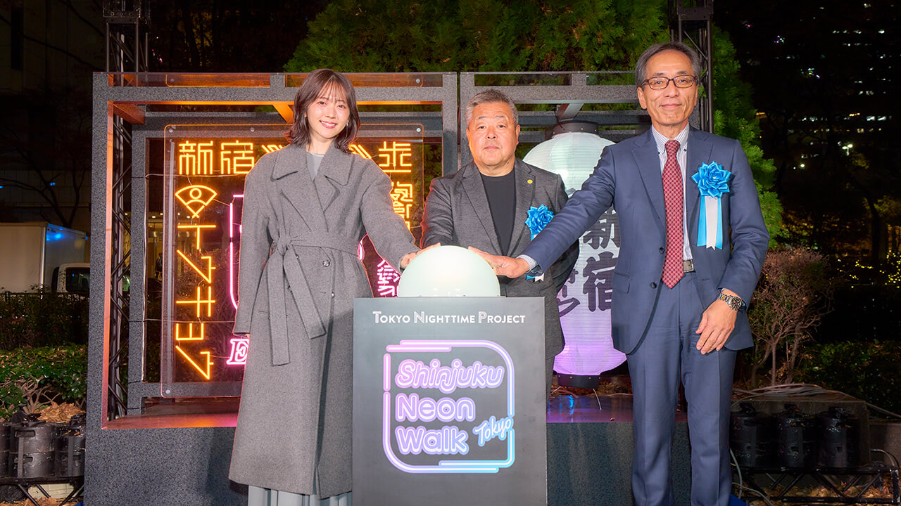 東京ナイトタイム魅力創出プロジェクト実行委員会は、2025年11月27日(木)、中央通り(新宿副都心4号街路)にて、西新宿エリアの冬を彩るイルミネーションイベント『Shinjuku Neon Walk』の点灯式を開催しました。点灯式には、一般社団法人 新宿観光振興協会 専務理事 島田治様、一般社団法人 新宿副都心エリア環境改善委員会 理事 橋爪弘幸様、西新宿一丁目商店街振興組合 理事長 竹川司様に加え、アーティスト/俳優の鈴木愛理さんが特別ゲストとして登壇しました。